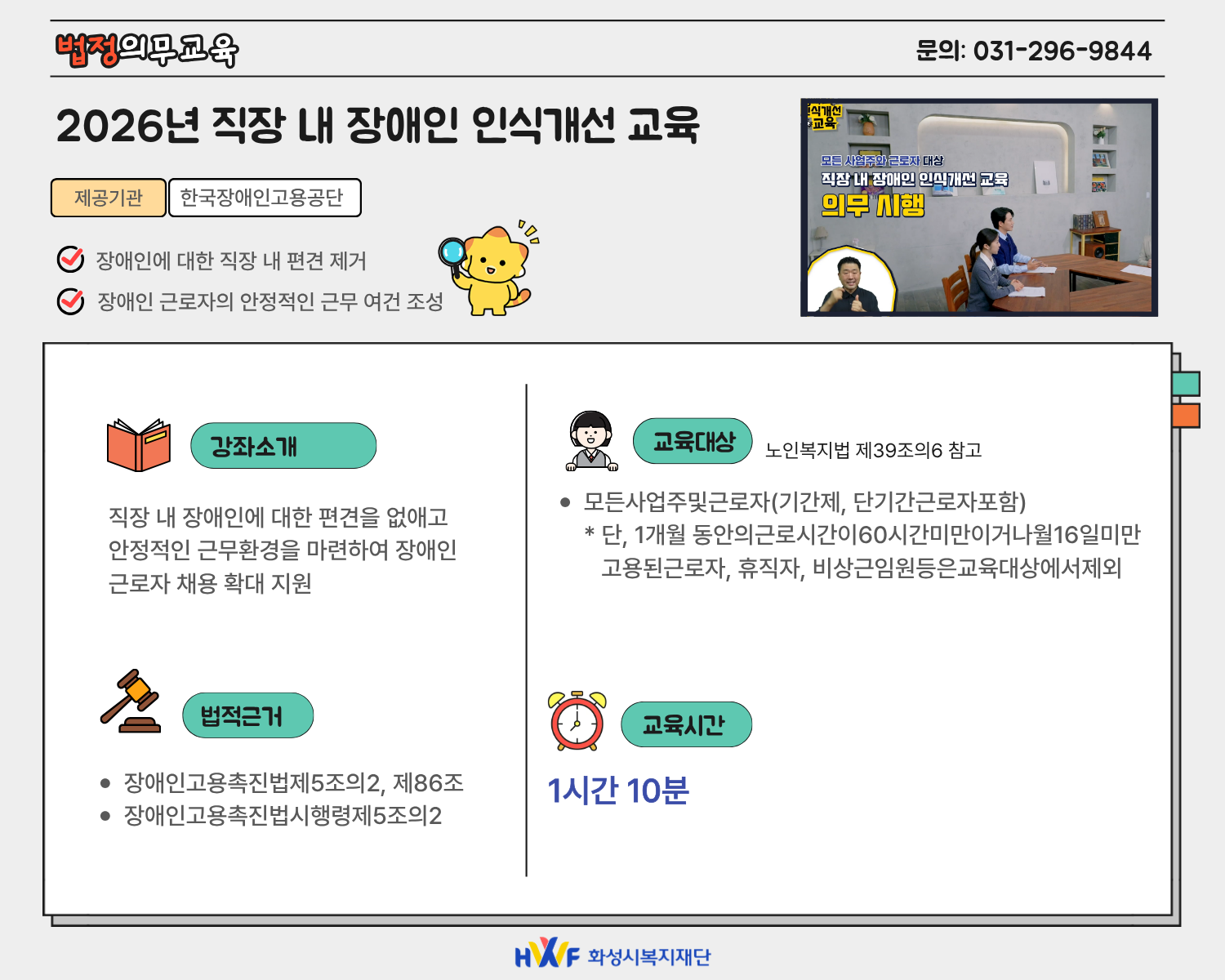 교육과정명 교육중 온라인과정 2026년 직장 내 장애인 인식개선 교육