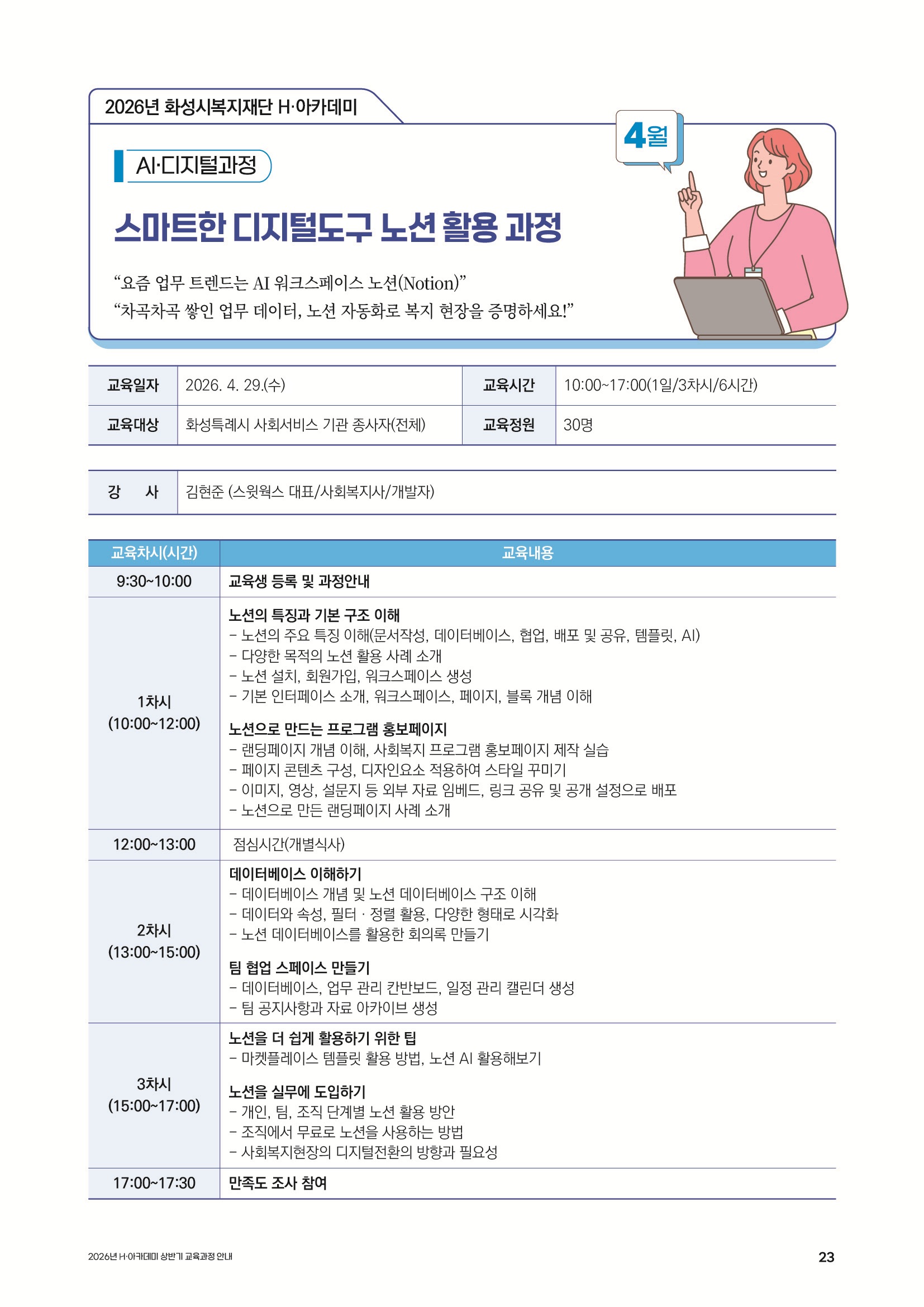 | 교육시간 | 6시간 | 교육비용 | 무료 |