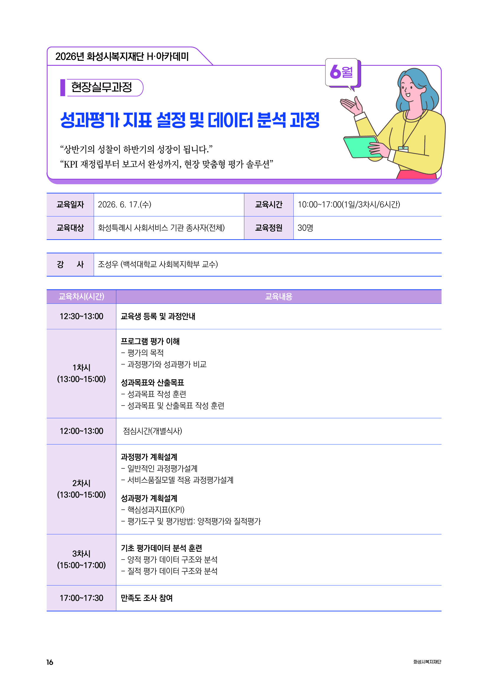 프로그램 성과평가, 핵심성과지표, 평가도구 및 평가방법, 데이터 및 분석
