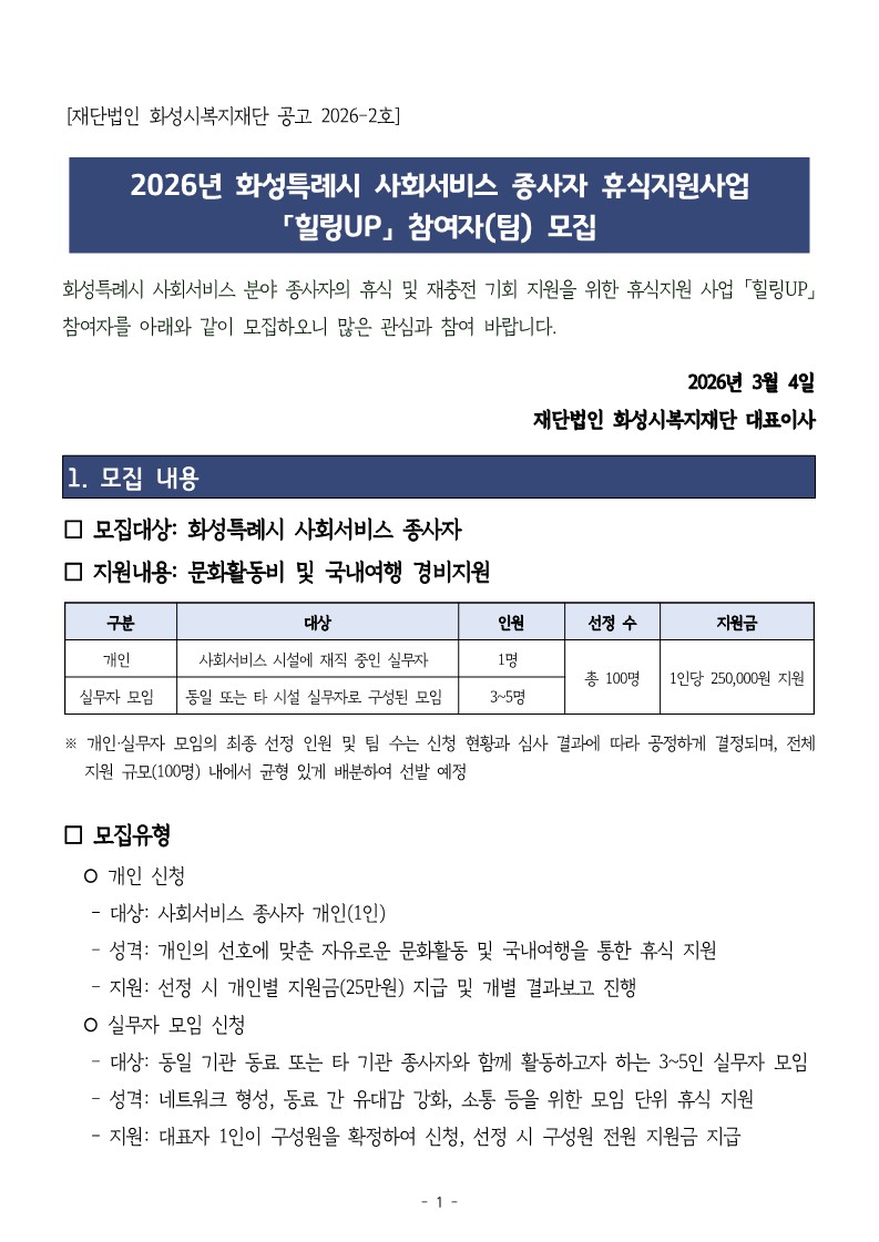 휴식지원사업 「힐링UP」